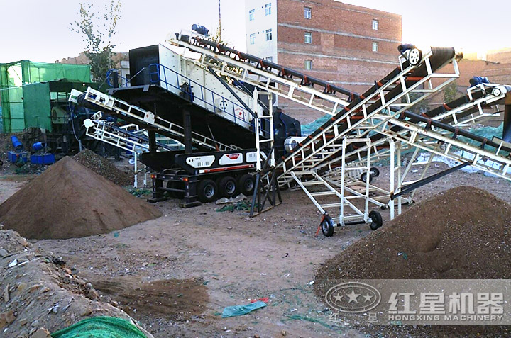 移動碎石機:西安建筑垃圾處理現場