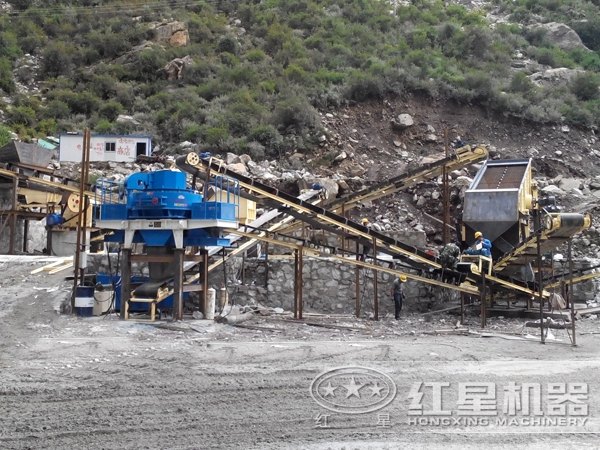 機制砂生產線現(xiàn)場圖,圓錐破更適合破碎硬度大的物料